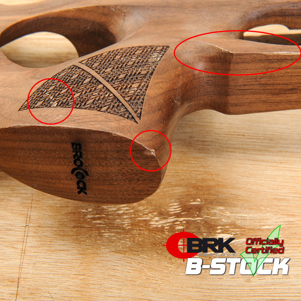 “Brocock” has been laser-etched into the underside of the pistol grip. The stock also features a ventilated recoil pad.