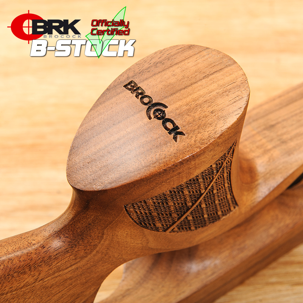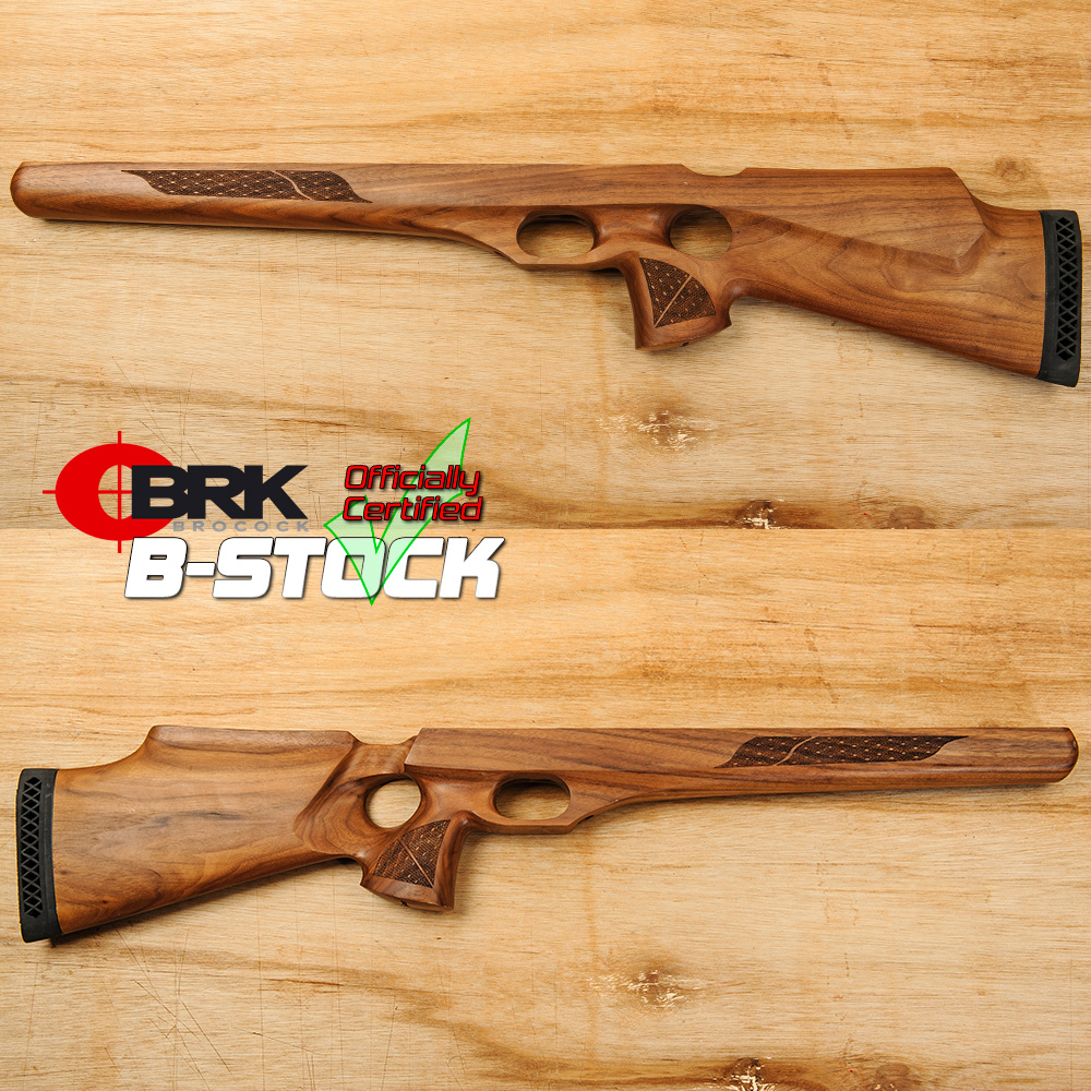 This is a B-STOCK Contour Elite Thumbhole Walnut Stock (#190), right-hand dedicated. It will only fit the later Elite models, with the 30mm air cylinder. It will not fit the early Contour models with the 25mm (1″) cylinder. This stock type features an integral trigger guard, It is genuine BRK Brocock factory replacement stock and fully functional, but due to some slight blemishes or other reasons, it is not in the condition we consider ‘new’. We are therefore able to offer it as a B-Stock item, at a reduced price that reflects the imperfections (see condition report below).