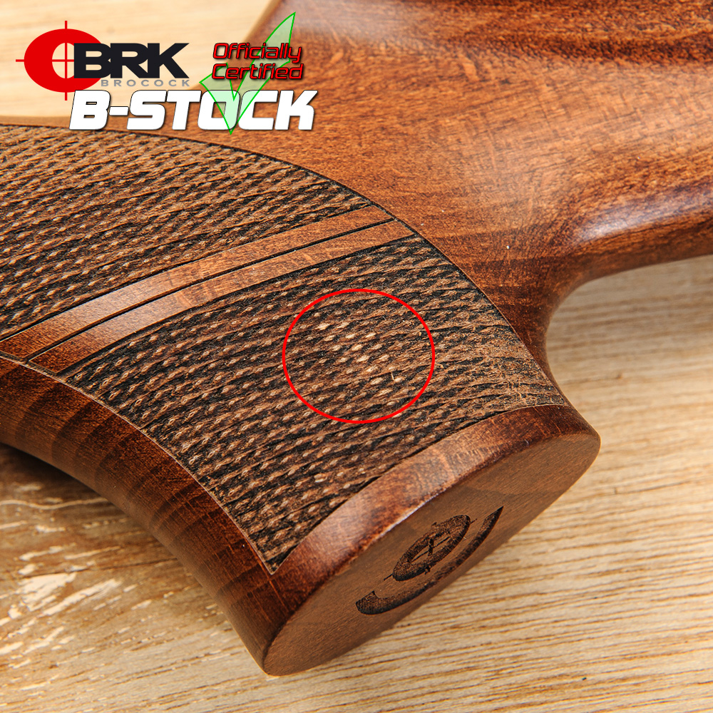 This is a B-STOCK Contour Sporter Beech Stock (#194) with ambi cheekpiece. It will only fit the earlier Contour models, with the 25mm (1″) air cylinder. It will not fit the later Contour ‘Elite’ models with the 30mm air cylinder tube. This stock type is designed for Contour versions which feature a separate, metal trigger guard. It is genuine BRK Brocock factory replacement stock and fully functional, but due to some slight blemishes or other reasons, it is not in the condition we consider ‘new’. We are therefore able to offer it as a B-Stock item, at a reduced price that reflects the imperfections (see condition report below).